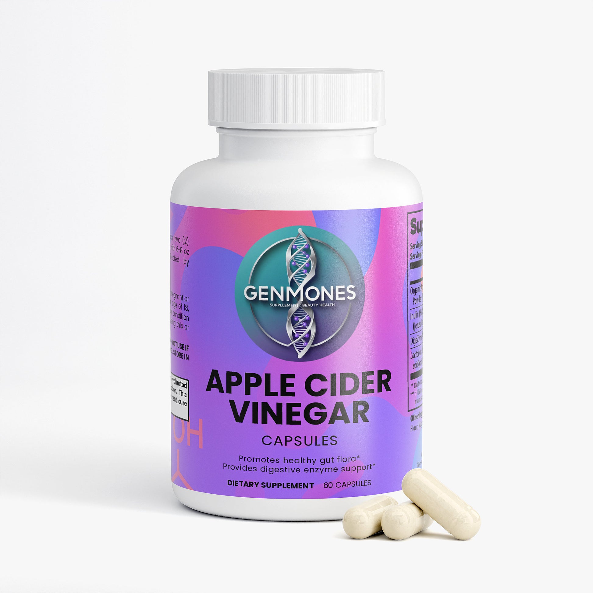 Take two (2) capsules daily to support digestion, assist occasional bloating, and help maintain a healthy gut microbiome. Whether you're looking to optimize your digestive wellness, support nutrient breakdown, or keep your gut in balance, this all-in-one ACV formula fits easily into your daily routine.